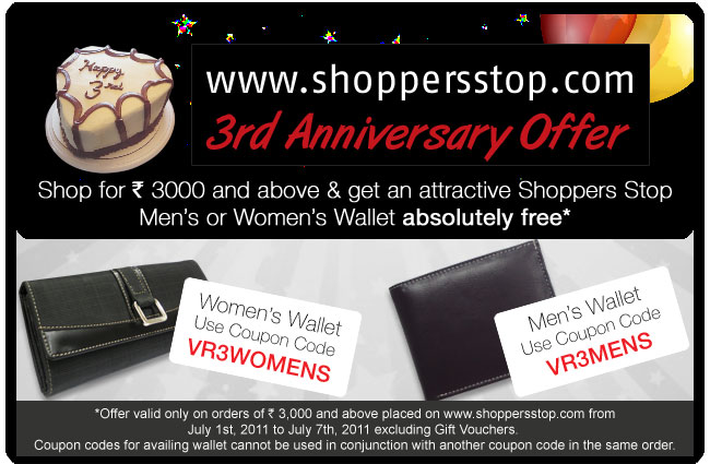 | Please remember that Shoppers Stop does NOT sell, rent, license or otherwise disclose any personal information to other parties. To ensure that future emails from Shoppers Stop aren’t filtered to your junkmail folder, add estore@shop.shoppersstop.com to your address book. Click here to change or remove your subscription Shoppers Stop Ltd. - Eureka Towers, 9th Floor, B - Wing, Mind Space, Link Road, Malad (W) Mumbai - 400 064 | | | | © 2011 Shoppers Stop Ltd. All Rights Reserved. | | | |