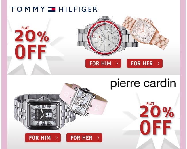 Men's Watches flat 20% offTommy Hilfiger Women's Watches flat 20% offPierre Cardin Men's Watches flat 20% offPierre Cardin Women's Watches flat  20%