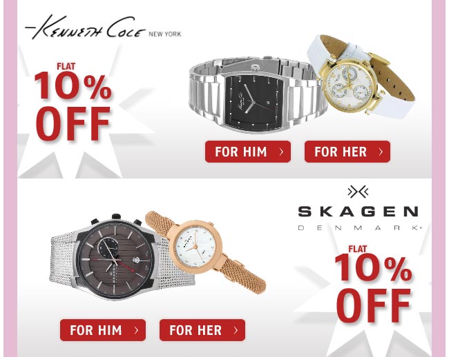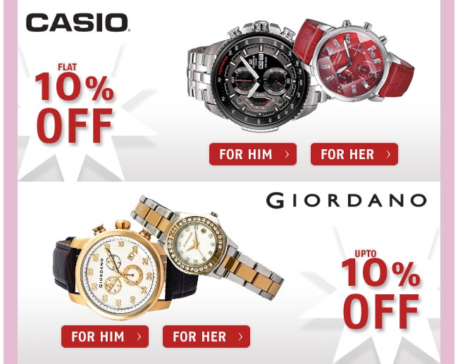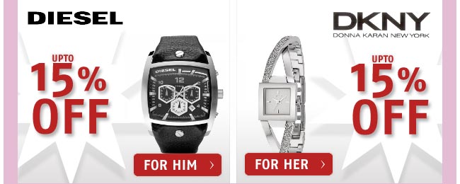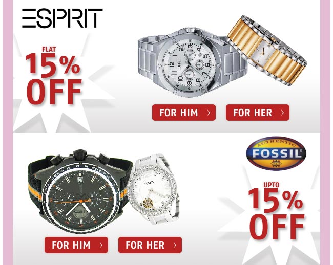 offEsprit Men's Watches flat 15% offEsprit Women's Watches flat 15% offFossil Men's Watches upto 15% offFossil Women's Watches upto 15% offCasio Men's Watches flat 10% offCasio Women's Watches flat 10% offGiordano Men's Watches upto 10% offGiordano Women's Watches upto 10% offKenneth Cole Men's Watches flat 10% offKenneth Cole Women's Watches flat 10% offSkagen Men's Watches flat 10% offSkagen Women's Watches flat 10% offDiesel Men's Watches upto 15% offDKNY Women's Watches upto 15% off