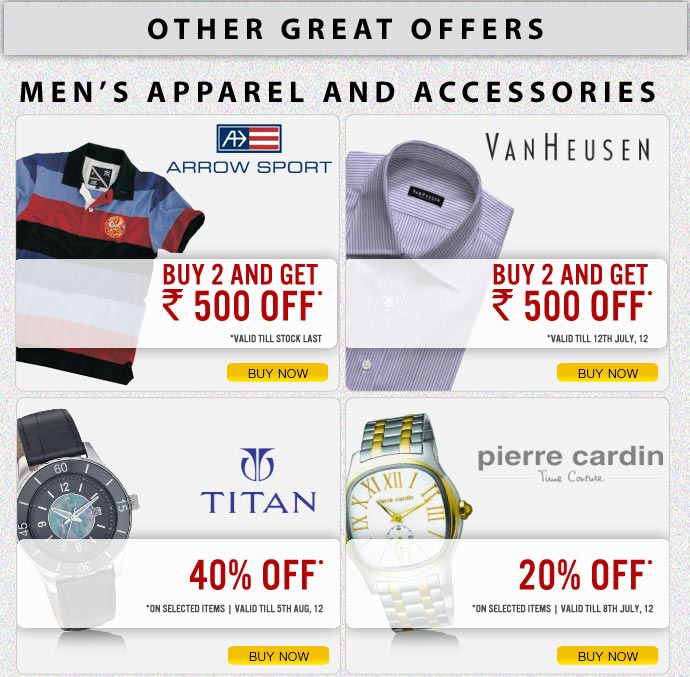 View all Mens Collection View all Women's CollectionBuy Now United Colors of Benetton Men's CollectionBuy Now Van Heusen CollectionBuy Now Titan Watches for Men's CollectionBuy Now Pierre cardin Watches for Men's CollectionBuy Now Salwar Churidar and suitsBuy Now KurtasBuy Now Titan Womens Watches CollectionBuy Now Elliza Donatein Handbags CollectionBuy Now Toys for your KidsShare this mailerJoin us on FacebookJoin us on Twitter
