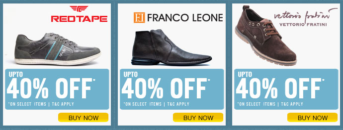 Red Tape upto 40% off - Buy NowFranco Leone upto 40% off - Buy NowVettorio Fratini upto 40% off - Buy NowShare this mailerJoin us on FacebookJoin us on Twitter