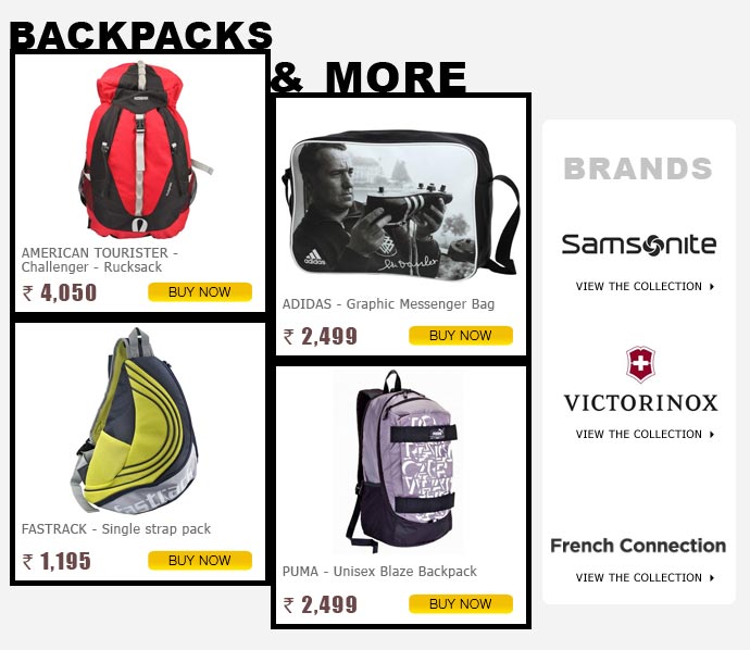 Sandals - Buy NowLee Cooper Sports Shoes - Buy NowFranco Leone Formal Shoes - Buy NowRed Tape - view the collectionSamsonite - View the collectionWoodland - View the collectionWallets - Buy NowBelts - Buy NowAustin Reed Wallet - Buy NowVettorio Fratini Wallet - Buy NowHidesign Wallet - Buy NowFastrack Belt - Buy NowFossil - View the collectionHidesign - View the collectionBulchee - View the collectionBackPacks - Buy NowAmerican Tourister Challenger Rucksack - Buy NowFastrack Single strap pack - Buy NowAdidas - Graphic Messanger Bag - Buy NowPuma Unisex Blaze Backpack - Buy NowSamsonite - View the CollectionVictorinox - View the collectionFrench Connection - View the collectionWomens FootwearPepper Sandals - Buy NowInc.5 Footwear - Buy NowHaute Curry Wedge Heel Sandals - Buy NowLife Wedge Heel Sandals - Buy NowCatwalk - View the collectionEnroute - View the collectionPuma - View the collectionFashion JewelleryPretty Women Earring - Buy NowPretty Women Pendant - Buy NowReal