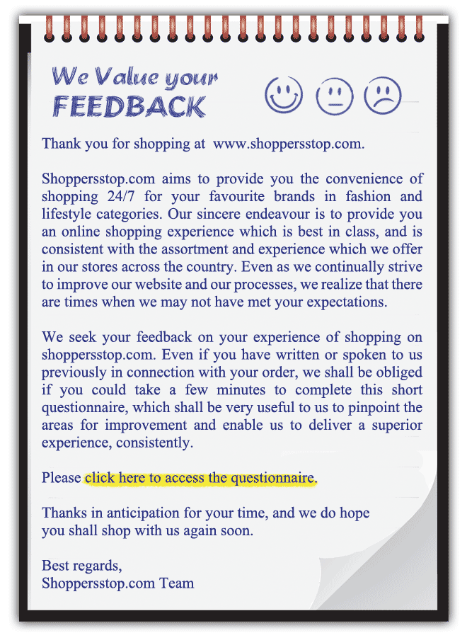 Please remember that Shoppers Stop does NOT sell, rent, license or otherwise disclose any personal information to other parties.